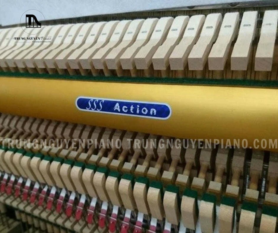 - Hệ thống pedal: 3 pedal (soft, sostenuto, damper)