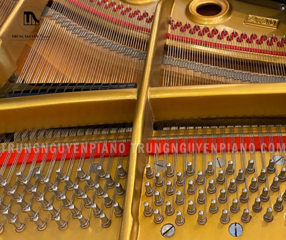 Dây đàn được làm từ thép cường độ cao, có độ dẻo tốt và hàm lượng cacbon thấp nên giúp dây đàn bền, ít bị đứt và giữ cao độ ổn định hơn. Bên cạnh đó, búa đàn sử dụng nỉ lông cừu chất lượng cao, được lựa chọn riêng cho từng dòng sản phẩm nhằm đạt hiệu quả truyền âm tốt nhất. Cấu tạo này giúp tiếng đàn rõ ràng, giàu màu sắc và duy trì độ bền cũng như độ ổn định trong thời gian dài sử dụng.