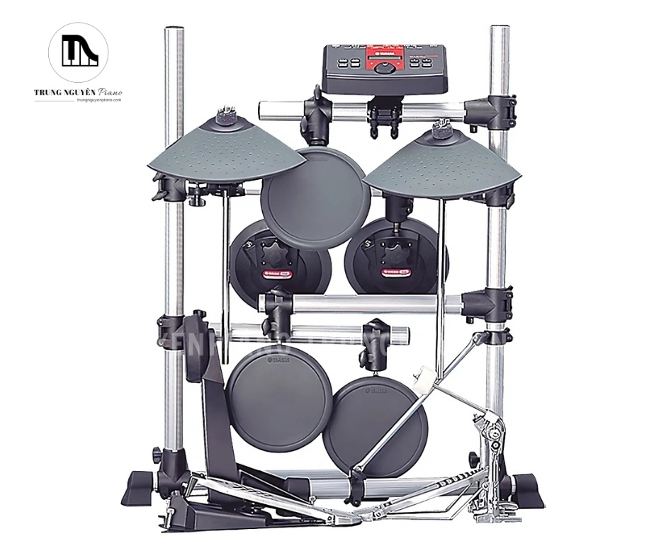- Cấu hình Pad: 5 Pad trống, 2 Pad cymbal, 1 Pad Hi hat và Pedal điều khiển